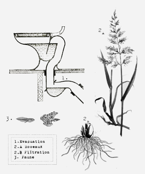 Système d’assainissement écologique qui utilise le pouvoir épurateur des plantes pour traiter les eaux usées mettant à profit des processus naturels entre des végétaux, le sol et des micro-organismes.La Cellule n'aura pas besoin d'aucun racordement extérieur pour la gestion de ses eaux usées, elle sera autonome pour le traitement de ses déchets organiques.RETOUR CELLULE